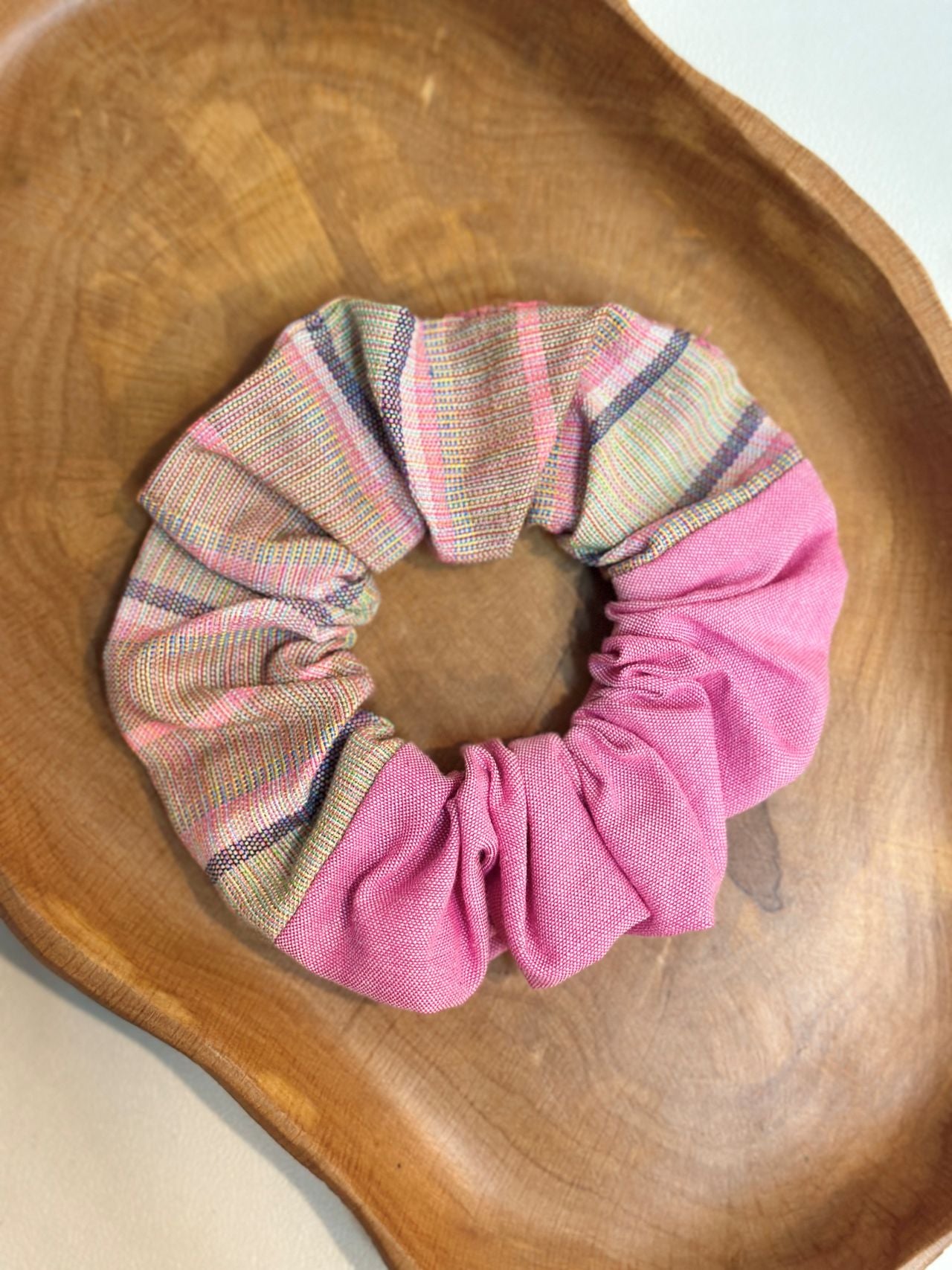 Add a pop of color and culture to your everyday look with our new cotton scrunchies made from handwoven fabric offcuts. These zero waste hair accessories are more than just functional - they're also a celebration of heritage and sustainability.
